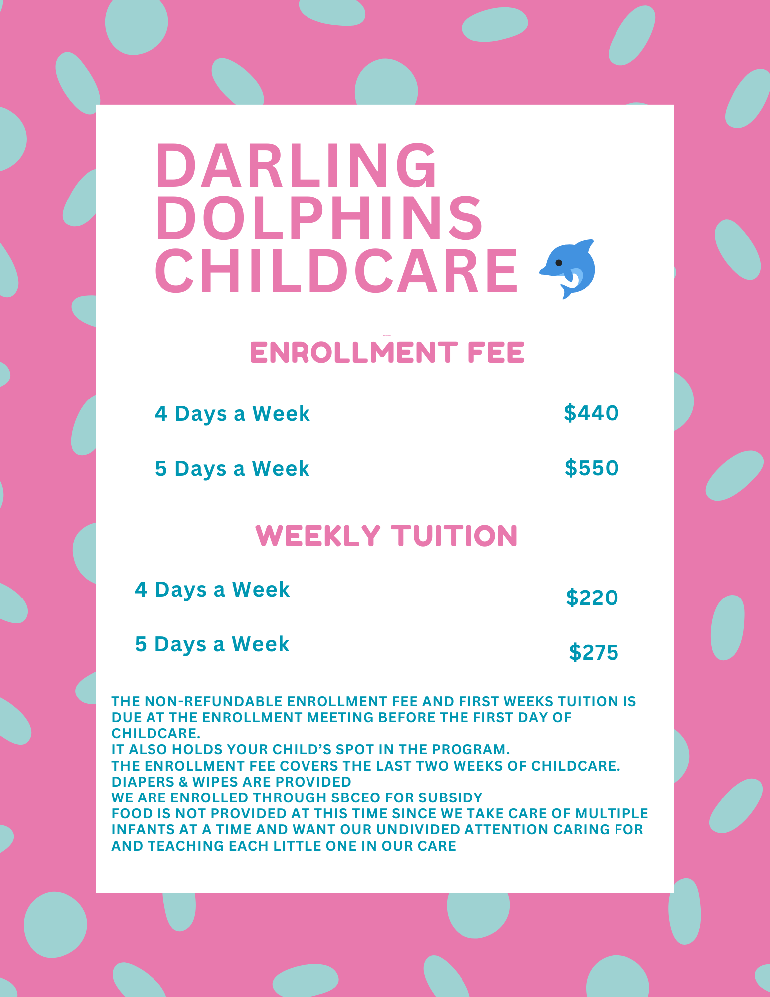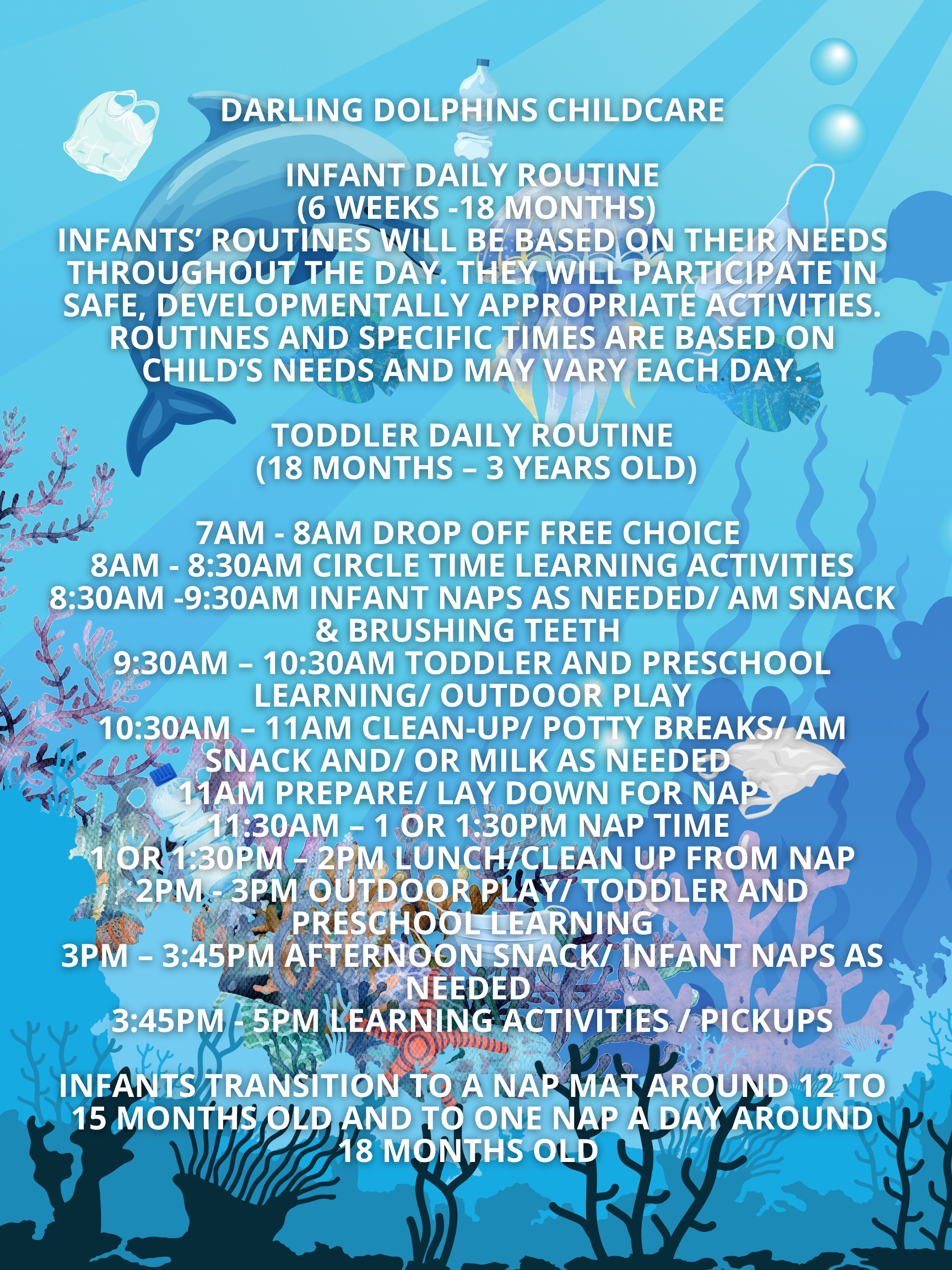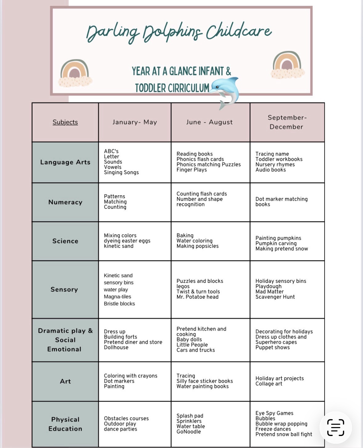 Please call or text to be added to our waitlist for our next infant openings. The average infant waitlist is usually around 6 months to a year. It is important to get on our waitlist as soon as you know you will need infant childcare.