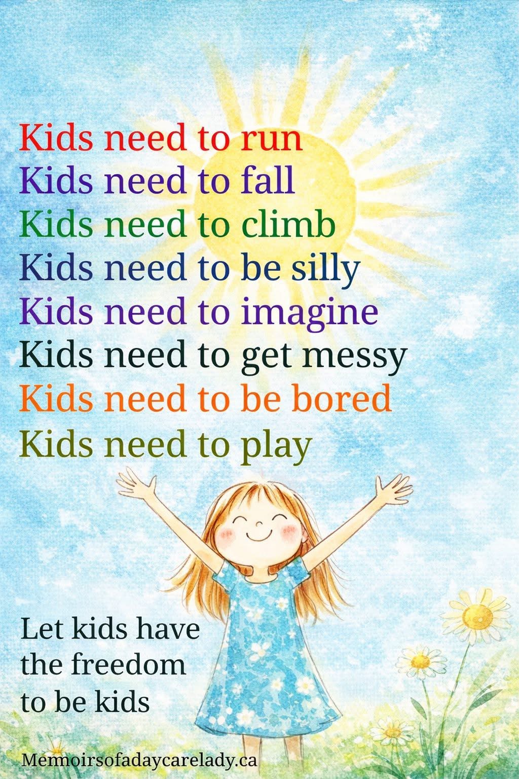 We provide the materials, nurturing, toys, activities and environment and children will learn through experiences and exploration. We believe it is important to let infants and toddlers be little as long as possible since they are growing and developing every single day.