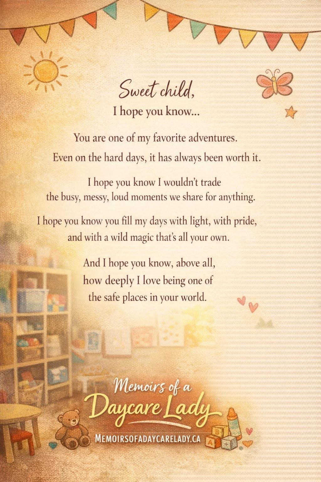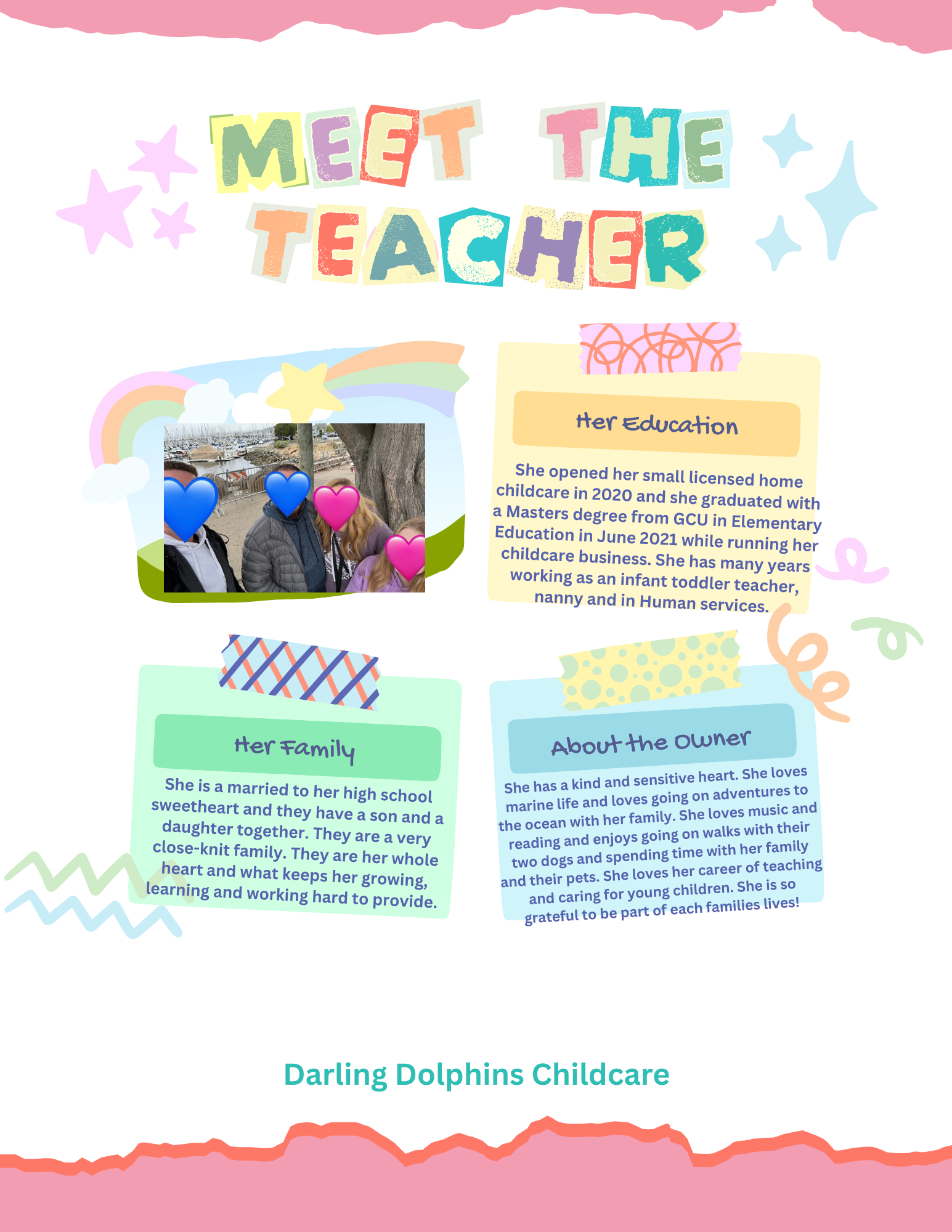 To provide a loving, safe and developmentally appropriate environment for all infants and toddlers enrolled in our program.
